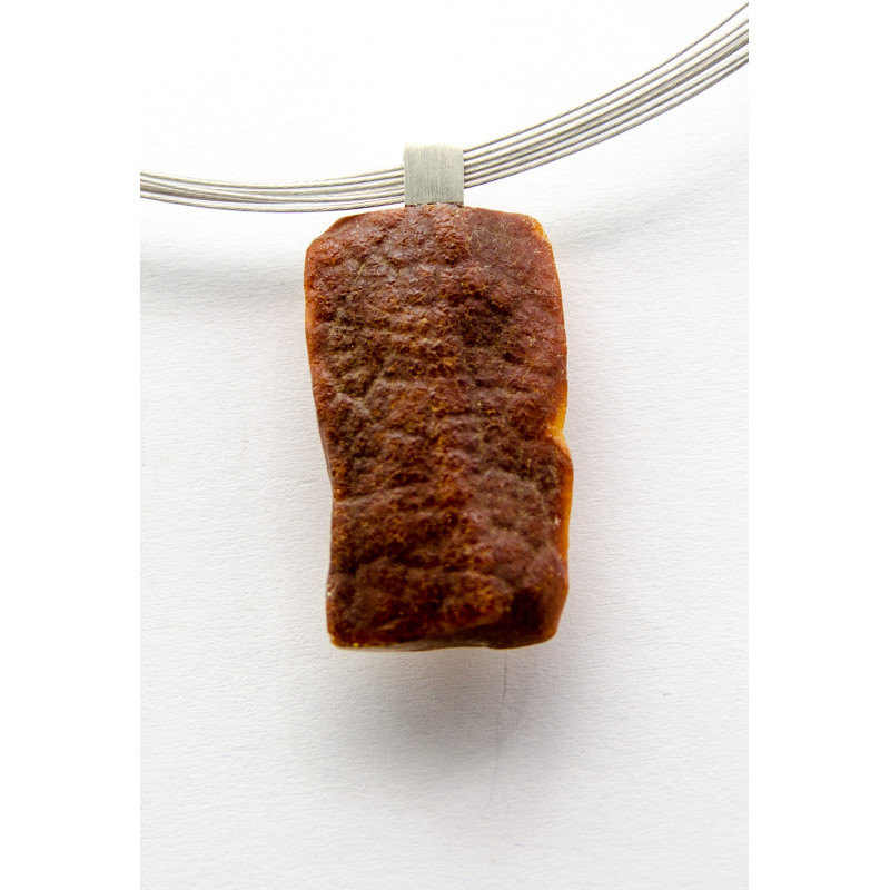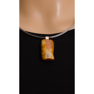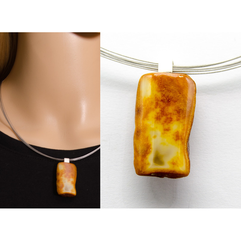 Handgemachter Anhänger aus baltischem Bernstein mit Silber 925 verbunden. Der in Form unregelmäßige Stein ist poliert.