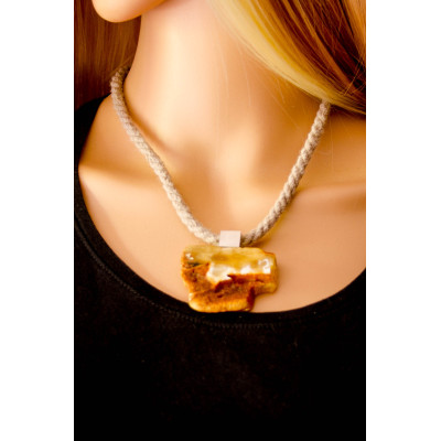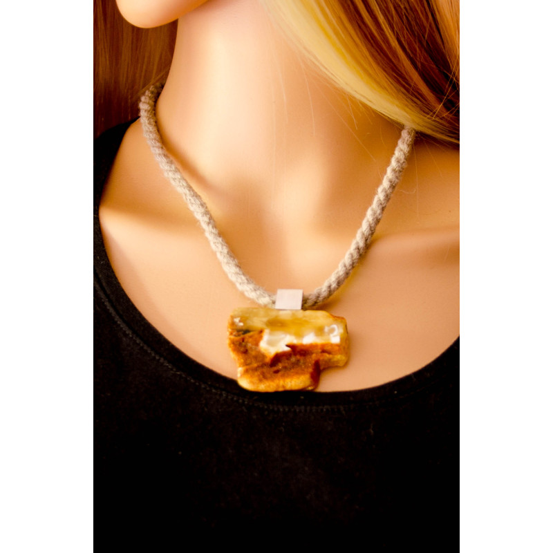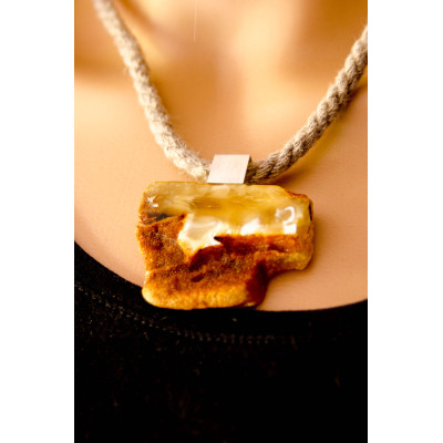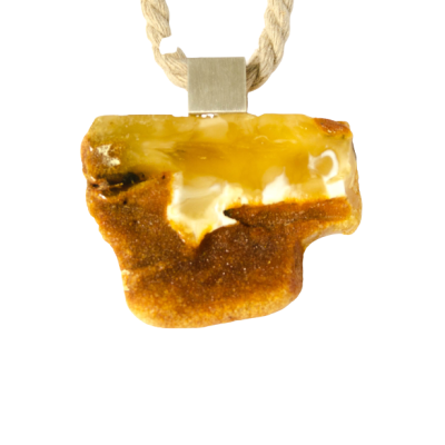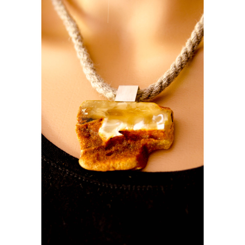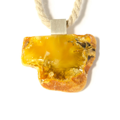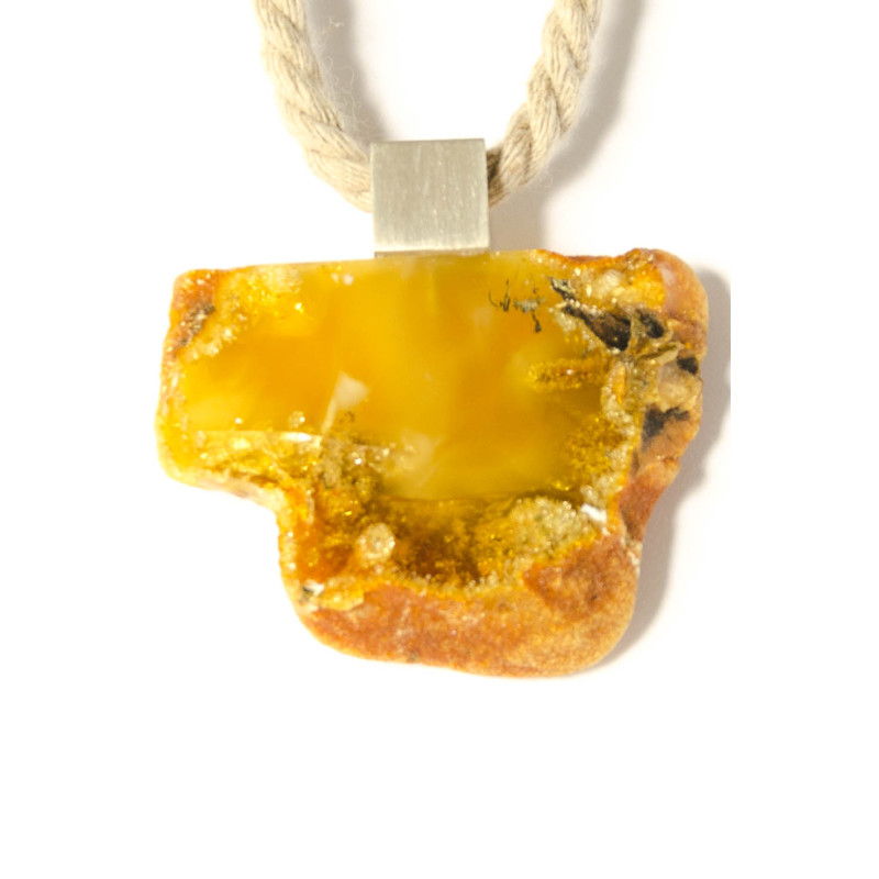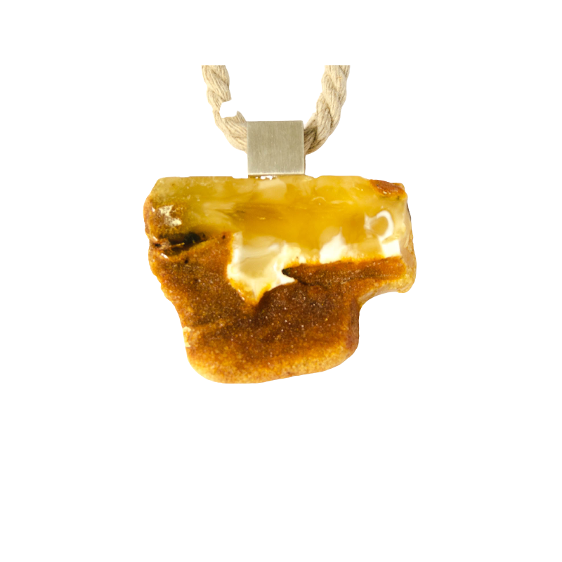 Wunderschöner Anhänger aus baltischem Bernstein, moderne, unregelmäßige Form, vorne teilweise poliert, hinten naturbelassen, verbunden mit mattem Sterling Silber 925.