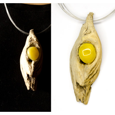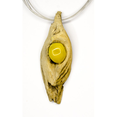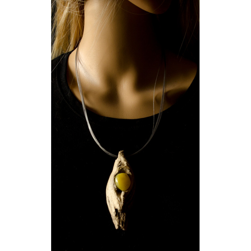 Bernstein Collier Halskette Anhänger Treibholz GELB Neu Unikat D2
