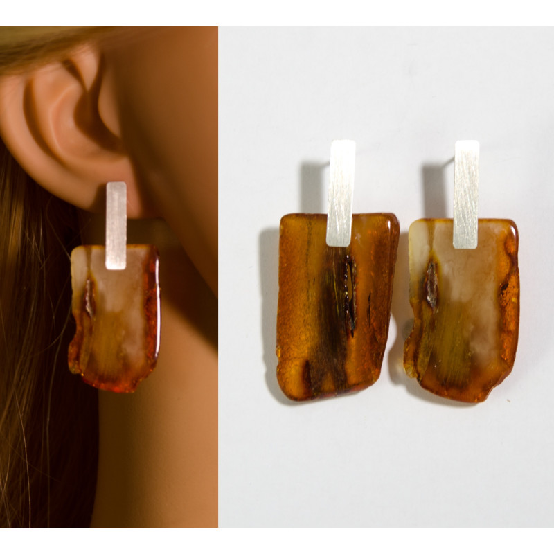 Elegante Silber Ohrringe mit echtem Bernstein – Handgefertigter Schmuck aus Naturmaterialien
