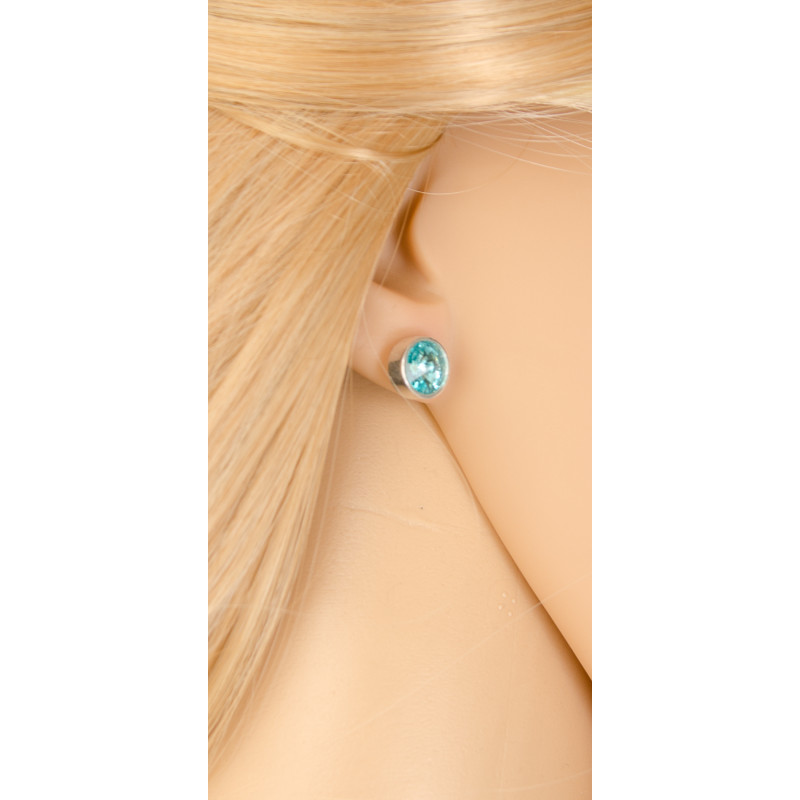 Material: Ohrring aus Silber 925, Fassung des Cabochons aus chirurgischem Stahl, nickelfrei.
